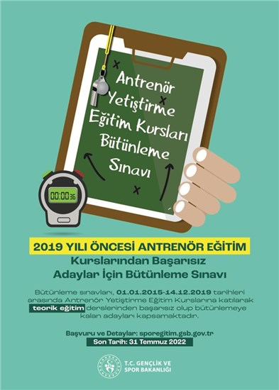 Antrenör Eğitim Yönetmeliği 14 Aralık 2019 tarihinde Resmî Gazete 'de yayımlanarak yürürlüğe girmiştir. Antrenör Eğitim Yönetmeliği'nin 'Diğer Geçiş Hükümleri' başlıklı Geçici 3. maddesi ''Bu Yönetmeliğin yürürlüğe girdiği tarihten önce başlamış olan işlemler, yürürlükten kaldırılan Yönetmelik hükümlerine göre sonuçlandırılır.'' hükmü doğrultusunda Spor Eğitimi ve Araştırmaları Daire Başkanlığı ve ilgili federasyonlar tarafından 01 Ocak 2015 - 14 Aralık 2019 tarihleri arasında antrenör yetiştirme eğitim kurslarına katılarak teori eğitimi ders veya derslerinden başarısız olan kursiyerlere yönelik bütünleme sınavı düzenlenmesi planlanmaktadır.