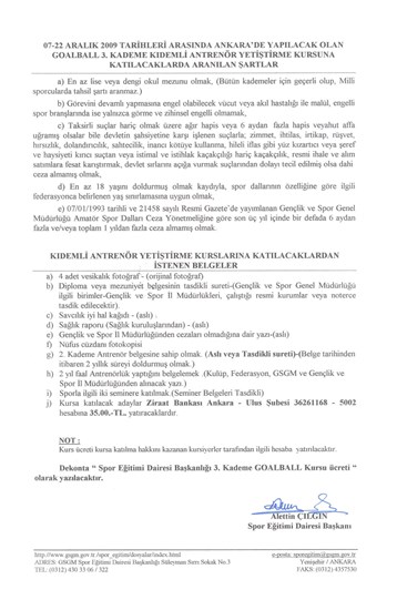 GSGM Spor Eğitim Dairesi Başkanlığı ve Federasyonumuz işbirliği  tarafından 3.Kademe Goalball Antrenörlük Kursu 07-22 Aralık 2009 tarihleri arasında Ankara 'da açılacaktır.Kursa 2.kademe Goalball Antrenörlük belgesine sahip olanlar başvurabileceklerdir.