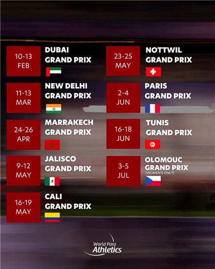 Dünya Para Atletizm Federasyonu, 2025 yılına ait Grand Prix takvimini duyurdu. Sekiz farklı ülkede düzenlenecek olan organizasyonlarda, Türkiye’yi temsil eden görme engelli milli sporcularımız da madalya mücadelesi verecek.