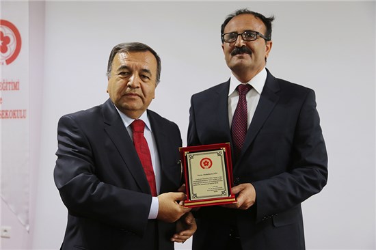 Başkanımız Sivas Cumhuriyet Üniversitesi Rektörü Prof. Dr. Faruk KOCACIK 'a plaket takdim ederken Rektör Yardımcısı Prof. Dr. Sami HİZMETLİ tarafından ise Başkanımıza Plaket verildi.