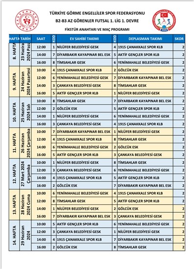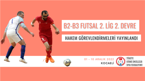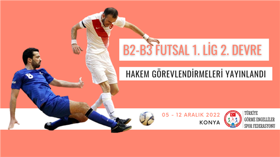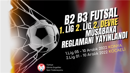 Görme Engelliler Spor Federasyonunun 2022 yılı faaliyet programında yer alan B2 B3 FUTSAL 1.Lig ve 2.Lig 2. Devre müsabakaları reglamanı yayınlandı.