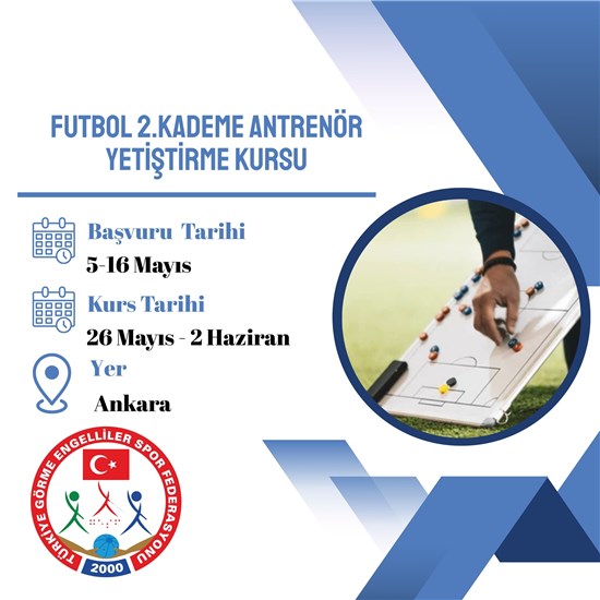 Türkiye Görme Engelliler Spor Federasyonu tarafından 24-29 Nisan tarihleri arasında düzenlenecek olan 2. Kademe Antrenör Yetiştirme Kursları